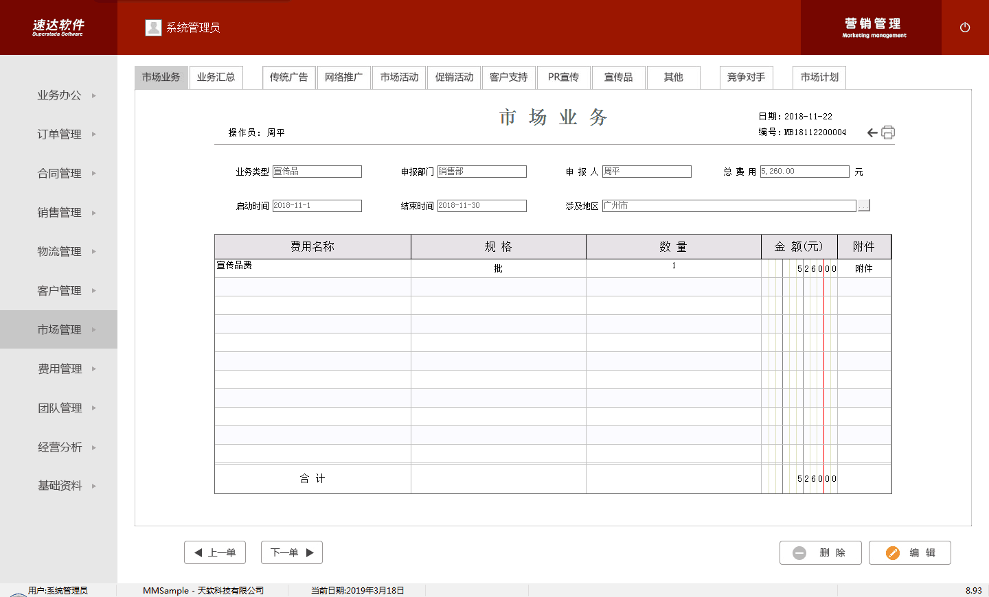 市场业务、业务汇总、传统广告、网络推广、市场活动、促销活动、客户支持、PR宣传、宣传品、其它业务、竞争对手 |